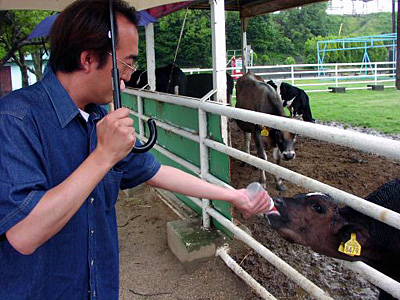 子牛は数頭いて、哺乳瓶を見ると我先にと寄ってきて咥えようとします。