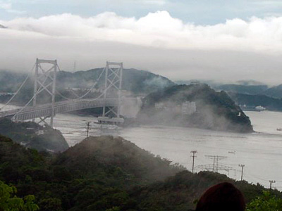 その後外の天気が小康状態になったのでテラスに出てみると大鳴門橋が見えました。