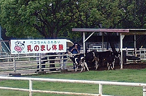 入ってしまったものはしょうがない、と中を散策。体験コーナーで牛の乳絞りと
